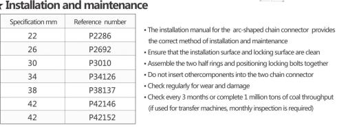 Application: For connecting round link chains (in vertical and horizontal position)、Heavy duty mining operations、As a high-performance underground conveyor、Single and multiple strand conveyors